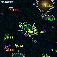Black segments are analyzed here. Roll mouse over color images to view segments. Best viewed in a wide browser window (1200 pixels or more). Download SED & P(z) plots to view larger versions.