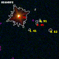 Black segments are analyzed here. Roll mouse over color images to view segments. Best viewed in a wide browser window (1200 pixels or more). Download SED & P(z) plots to view larger versions.