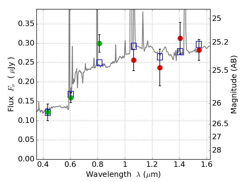 Object #4094   x,y = (3194, 1347)   RA, Dec = (08:42:55.776, 36:20:42.36) = (130.73240, 36.34510)   BPZ = 0.593 [0.183--0.878]   type = 9.50 (SB3_B10 - SB2_B10)   chisq2 = 1.25   ODDS = 0.42   z_cluster = 0.282