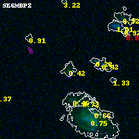 Black segments are analyzed here. Roll mouse over color images to view segments. Best viewed in a wide browser window (1200 pixels or more). Download SED & P(z) plots to view larger versions.