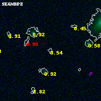 Black segments are analyzed here. Roll mouse over color images to view segments. Best viewed in a wide browser window (1200 pixels or more). Download SED & P(z) plots to view larger versions.