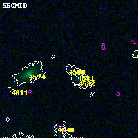 Black segments are analyzed here. Roll mouse over color images to view segments. Best viewed in a wide browser window (1200 pixels or more). Download SED & P(z) plots to view larger versions.