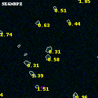 Black segments are analyzed here. Roll mouse over color images to view segments. Best viewed in a wide browser window (1200 pixels or more). Download SED & P(z) plots to view larger versions.