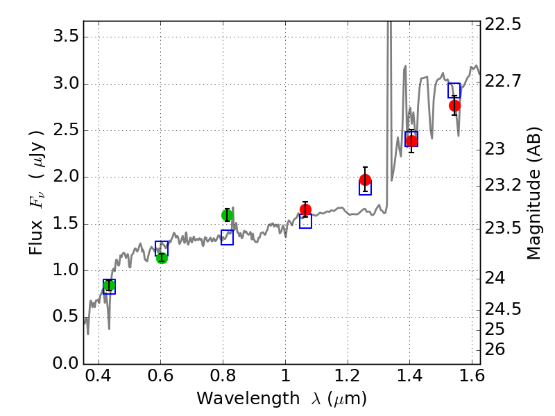 Object #950   x,y = (2718, 3474)   RA, Dec = (08:42:58.152, 36:22:49.80) = (130.74230, 36.38050)   BPZ = 2.583 [2.429--2.731]   type = 9.10 (SB2_B10 - SB3_B10)   chisq2 = 0.65   ODDS = 0.94   z_cluster = 0.282