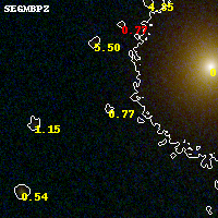Object #54   x,y = (2651, 3357)   RA, Dec = (08:42:58.488, 36:22:42.60) = (130.74370, 36.37850)   BPZ = 0.768 [0.116--3.123]   type = 10.30 (SB3_B10 - SB11_A_0_l)   stellarity = 0.08   chisq2 = 0.32   ODDS = 0.21   z_cluster = 0.282