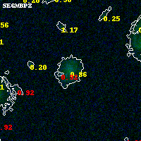 Object #2507 x,y = (3924, 2975) RA, Dec = (02:45:20.064, -53:01:58.44) = (41.33360, -53.03290) BPZ = 0.861 [0.782--1.470] type = 7.60 (SB1_B10 - Scd_B10) chisq2 = 0.00 ODDS = 0.34 z_cluster = 0.300