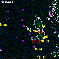 Black segments are analyzed here. Roll mouse over color images to view segments. Best viewed in a wide browser window (1200 pixels or more). Download SED & P(z) plots to view larger versions.