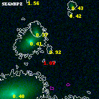 Black segments are analyzed here. Roll mouse over color images to view segments. Best viewed in a wide browser window (1200 pixels or more). Download SED & P(z) plots to view larger versions.