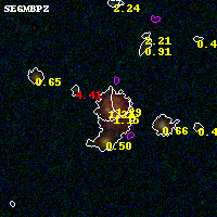 Black segments are analyzed here. Roll mouse over color images to view segments. Best viewed in a wide browser window (1200 pixels or more). Download SED & P(z) plots to view larger versions.