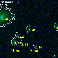 Black segments are analyzed here. Roll mouse over color images to view segments. Best viewed in a wide browser window (1200 pixels or more). Download SED & P(z) plots to view larger versions.