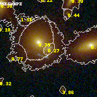 Object #209   x,y = (2637, 3171)   RA, Dec = (02:45:28.608, -53:01:46.92) = (41.36920, -53.02970)   BPZ = 0.271 [0.193--0.310]   type = 4.20 (Ell4_A_0 - ES0_B10)   stellarity = 0.04   chisq2 = 0.07   ODDS = 0.85   z_cluster = 0.300