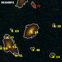 Black segments are analyzed here. Roll mouse over color images to view segments. Best viewed in a wide browser window (1200 pixels or more). Download SED & P(z) plots to view larger versions.