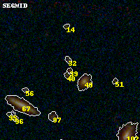 Black segments are analyzed here. Roll mouse over color images to view segments. Best viewed in a wide browser window (1200 pixels or more). Download SED & P(z) plots to view larger versions.