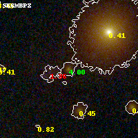 Object #628   x,y = (1835, 2410)   RA, Dec = (02:45:33.960, -53:02:32.64) = (41.39150, -53.04240)   BPZ = 3.998 [3.768--4.145]   type = 8.30 (SB1_B10 - SB2_B10)   stellarity = 0.02   chisq2 = 0.32   ODDS = 0.97   z_cluster = 0.300