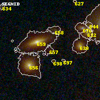 Black segments are analyzed here. Roll mouse over color images to view segments. Best viewed in a wide browser window (1200 pixels or more). Download SED & P(z) plots to view larger versions.