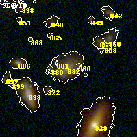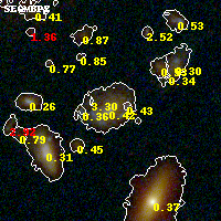 Black segments are analyzed here. Roll mouse over color images to view segments. Best viewed in a wide browser window (1200 pixels or more). Download SED & P(z) plots to view larger versions.