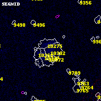 Object #10302 x,y = (2195, 3831) RA, Dec = (01:03:05.664, -49:15:31.68) = (15.77360, -49.25880) BPZ = 0.694 [0.630--2.323] type = 7.30 (Scd_B10 - SB1_B10) chisq2 = 0.00 ODDS = 0.62 z_cluster = 0.870