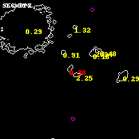 Object #13031 x,y = (4614, 6102) RA, Dec = (01:02:50.856, -49:13:15.60) = (15.71190, -49.22100) BPZ = 0.384 [0.177--4.041] type = 8.20 (SB1_B10 - SB2_B10) chisq2 = 1.90 ODDS = 0.05 z_cluster = 0.870