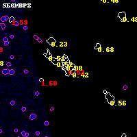 Object #15453 x,y = (5375, 5287) RA, Dec = (01:02:46.176, -49:14:04.56) = (15.69240, -49.23460) BPZ = 0.519 [0.123--4.220] type = 9.40 (SB2_B10 - SB3_B10) chisq2 = 2.14 ODDS = 0.22 z_cluster = 0.870