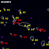 Object #15694 x,y = (3206, 5230) RA, Dec = (01:02:59.472, -49:14:07.80) = (15.74780, -49.23550) BPZ = 0.840 [0.763--1.117] type = 5.00 (ES0_B10) chisq2 = 0.00 ODDS = 0.77 z_cluster = 0.870