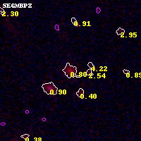 Object #17287 x,y = (4964, 4652) RA, Dec = (01:02:48.696, -49:14:42.72) = (15.70290, -49.24520) BPZ = 0.799 [0.759--0.891] type = 5.30 (ES0_B10 - Sbc_B10) chisq2 = 0.04 ODDS = 0.92 z_cluster = 0.870
