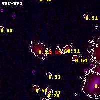 Object #17676 x,y = (4997, 4515) RA, Dec = (01:02:48.504, -49:14:50.64) = (15.70210, -49.24740) BPZ = 0.529 [0.131--4.503] type = 10.00 (SB3_B10) chisq2 = 3.06 ODDS = 0.17 z_cluster = 0.870