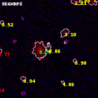 Object #18148 x,y = (3232, 4358) RA, Dec = (01:02:59.304, -49:15:00.36) = (15.74710, -49.25010) BPZ = 0.857 [0.535--1.008] type = 9.40 (SB2_B10 - SB3_B10) chisq2 = 0.39 ODDS = 0.40 z_cluster = 0.870