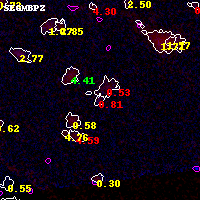 Object #3770 x,y = (2875, 2021) RA, Dec = (01:03:01.512, -49:17:20.40) = (15.75630, -49.28900) BPZ = 0.814 [0.688--1.965] type = 10.50 (SB11_A_0_l - SB3_B10) chisq2 = 1.02 ODDS = 0.25 z_cluster = 0.870