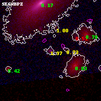 Object #3792 x,y = (3148, 2028) RA, Dec = (01:02:59.832, -49:17:20.04) = (15.74930, -49.28890) BPZ = 1.971 [1.799--2.115] type = 9.80 (SB3_B10 - SB2_B10) chisq2 = 0.26 ODDS = 0.81 z_cluster = 0.870
