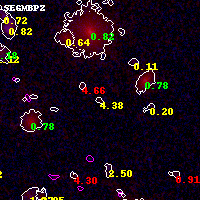 Object #4297 x,y = (2895, 2189) RA, Dec = (01:03:01.392, -49:17:10.32) = (15.75580, -49.28620) BPZ = 4.381 [4.040--4.642] type = 11.00 (SB11_A_0_l) chisq2 = 0.90 ODDS = 0.86 z_cluster = 0.870