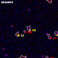 Object #5061 x,y = (2448, 2423) RA, Dec = (01:03:04.128, -49:16:56.28) = (15.76720, -49.28230) BPZ = 2.590 [2.418--2.735] type = 10.40 (SB3_B10 - SB11_A_0_l) chisq2 = 0.18 ODDS = 0.92 z_cluster = 0.870