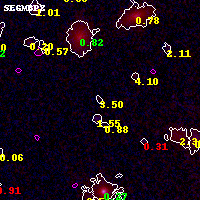 Object #5167 x,y = (2807, 2456) RA, Dec = (01:03:01.920, -49:16:54.48) = (15.75800, -49.28180) BPZ = 3.505 [0.342--3.796] type = 11.00 (SB11_A_0_l) chisq2 = 0.75 ODDS = 0.58 z_cluster = 0.870