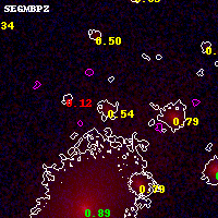 Object #5572 x,y = (3028, 2590) RA, Dec = (01:03:00.576, -49:16:46.20) = (15.75240, -49.27950) BPZ = 0.542 [0.459--0.913] type = 3.00 (Ell5_A_0) chisq2 = 0.22 ODDS = 0.51 z_cluster = 0.870