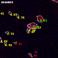 Object #6243 x,y = (3624, 2806) RA, Dec = (01:02:56.904, -49:16:33.24) = (15.73710, -49.27590) BPZ = 1.199 [1.144--2.324] type = 10.30 (SB3_B10 - SB11_A_0_l) chisq2 = 0.34 ODDS = 0.43 z_cluster = 0.870