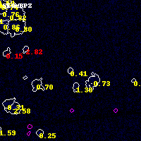 Object #6921 x,y = (5305, 3041) RA, Dec = (01:02:46.608, -49:16:19.20) = (15.69420, -49.27200) BPZ = 0.410 [0.228--3.031] type = 10.30 (SB3_B10 - SB11_A_0_l) chisq2 = 0.72 ODDS = 0.05 z_cluster = 0.870
