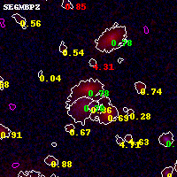 Object #7009 x,y = (2594, 3075) RA, Dec = (01:03:03.216, -49:16:17.04) = (15.76340, -49.27140) BPZ = 0.782 [0.704--0.826] type = 5.20 (ES0_B10 - Sbc_B10) chisq2 = 0.02 ODDS = 0.97 z_cluster = 0.870