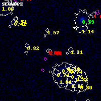 Object #7271 x,y = (5167, 3172) RA, Dec = (01:02:47.448, -49:16:11.28) = (15.69770, -49.26980) BPZ = 2.877 [0.187--3.638] type = 9.70 (SB3_B10 - SB2_B10) chisq2 = 2.73 ODDS = 0.17 z_cluster = 0.870