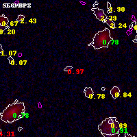 Object #7325 x,y = (2700, 3196) RA, Dec = (01:03:02.568, -49:16:09.84) = (15.76070, -49.26940) BPZ = 0.973 [0.562--2.052] type = 9.30 (SB2_B10 - SB3_B10) chisq2 = 1.70 ODDS = 0.25 z_cluster = 0.870