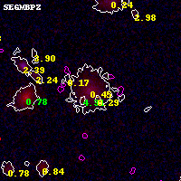 Object #7666 x,y = (2822, 3247) RA, Dec = (01:03:01.824, -49:16:06.96) = (15.75760, -49.26860) BPZ = 0.447 [0.416--0.544] type = 8.50 (SB2_B10 - SB1_B10) chisq2 = 0.09 ODDS = 0.79 z_cluster = 0.870