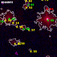 Object #8131 x,y = (4764, 3450) RA, Dec = (01:02:49.920, -49:15:54.72) = (15.70800, -49.26520) BPZ = 1.572 [1.083--2.440] type = 10.30 (SB3_B10 - SB11_A_0_l) chisq2 = 0.23 ODDS = 0.26 z_cluster = 0.870