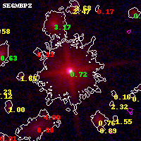 Object #8452 x,y = (4502, 3376) RA, Dec = (01:02:51.528, -49:15:59.04) = (15.71470, -49.26640) BPZ = 0.725 [0.708--0.745] type = 3.90 (Ell4_A_0 - Ell5_A_0) chisq2 = 0.95 ODDS = 1.00 z_cluster = 0.870