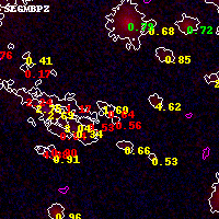Object #8997 x,y = (4357, 4051) RA, Dec = (01:02:52.416, -49:15:18.72) = (15.71840, -49.25520) BPZ = 0.640 [0.202--3.085] type = 10.50 (SB11_A_0_l - SB3_B10) chisq2 = 1.51 ODDS = 0.07 z_cluster = 0.870