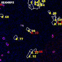 Object #9876 x,y = (2172, 3729) RA, Dec = (01:03:05.808, -49:15:37.80) = (15.77420, -49.26050) BPZ = 0.332 [0.300--3.529] type = 9.90 (SB3_B10 - SB2_B10) chisq2 = 1.51 ODDS = 0.31 z_cluster = 0.870