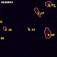 Object #1013 x,y = (2719, 4019) RA, Dec = (01:03:02.448, -49:15:20.52) = (15.76020, -49.25570) BPZ = 0.575 [0.129--4.206] type = 9.10 (SB2_B10 - SB3_B10) chisq2 = 0.72 ODDS = 0.23 z_cluster = 0.870