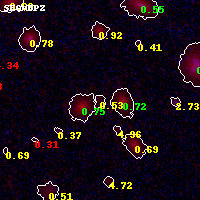 Object #1184 x,y = (4259, 3801) RA, Dec = (01:02:53.016, -49:15:33.48) = (15.72090, -49.25930) BPZ = 0.531 [0.289--5.201] type = 3.00 (Ell5_A_0) chisq2 = 0.77 ODDS = 0.27 z_cluster = 0.870