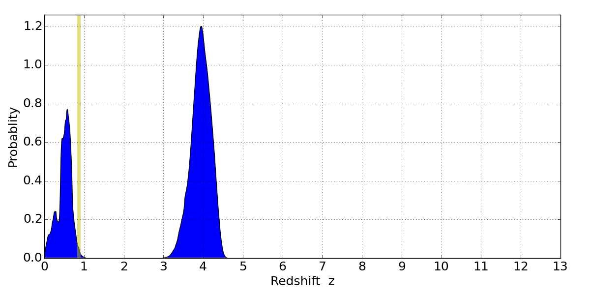 Best viewed in a wide browser window (1200 pixels or more). Download SED & P(z) plots to view larger versions.