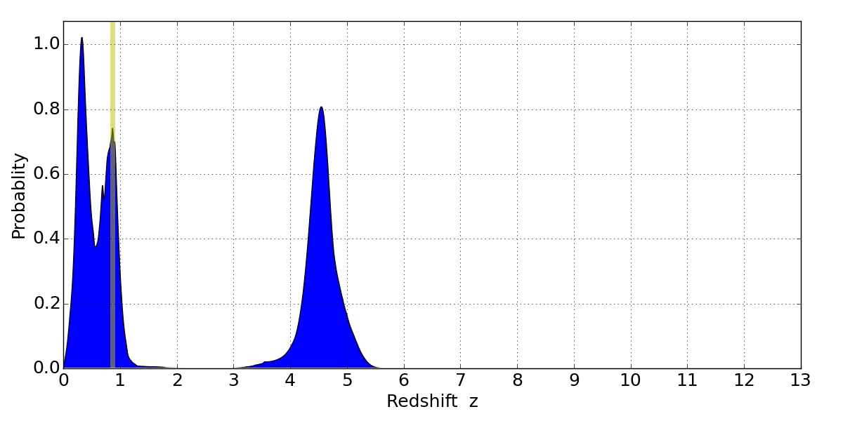 Best viewed in a wide browser window (1200 pixels or more). Download SED & P(z) plots to view larger versions.