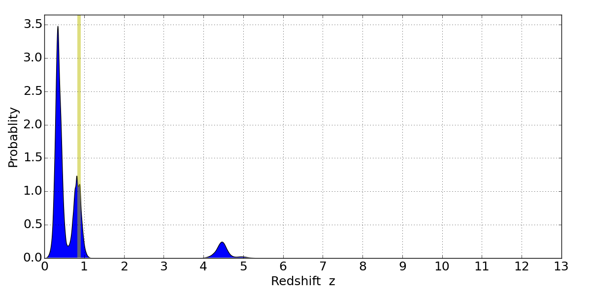 Best viewed in a wide browser window (1200 pixels or more). Download SED & P(z) plots to view larger versions.