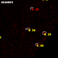 Object #16 x,y = (3668, 1690) RA, Dec = (01:02:56.640, -49:17:40.20) = (15.73600, -49.29450) BPZ = 0.561 [0.200--4.227] type = 9.90 (SB3_B10 - SB2_B10) chisq2 = 0.68 ODDS = 0.23 z_cluster = 0.870