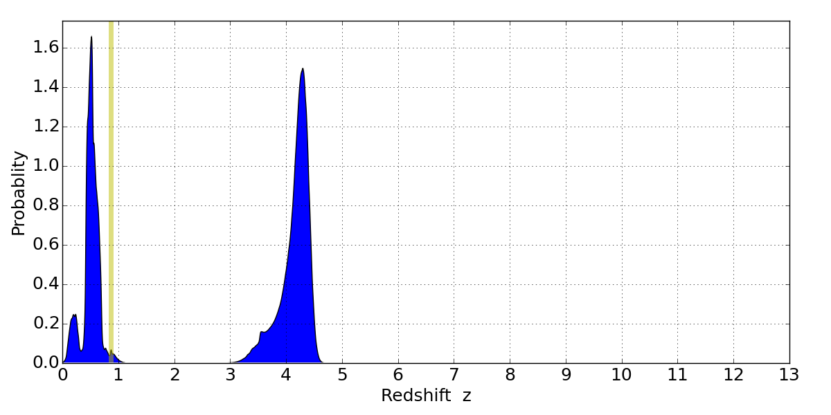 Best viewed in a wide browser window (1200 pixels or more). Download SED & P(z) plots to view larger versions.